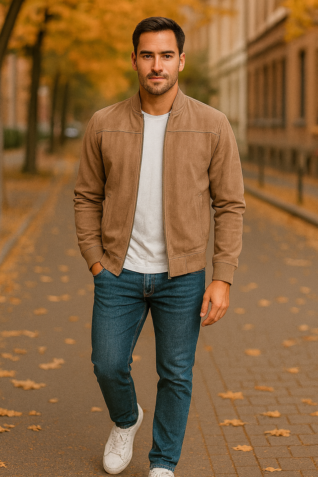 Diese Jacke aus echtem Wildleder verkörpert zeitlose Eleganz. Ein Premium-Kleidungsstück, das jeden Look mit müheloser Raffinesse aufwertet.