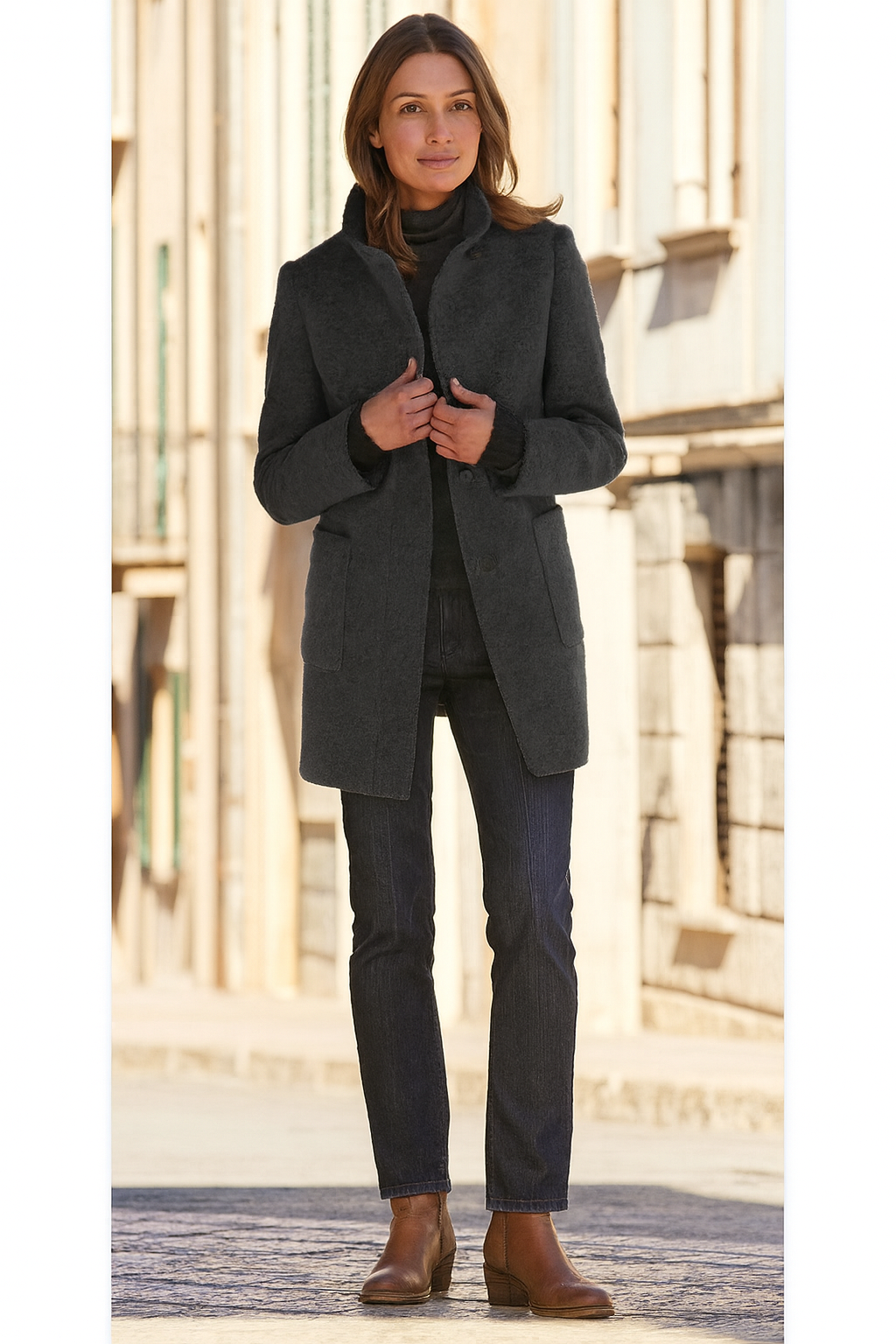 Wenn es kalt wird, brauchen Sie ein Kleidungsstück, das Ihnen sowohl Sicherheit als auch Stil bietet, ohne übertrieben zu wirken. Dahlberg | Klassischer Mantel ist ein Mantel, der zeitlose Eleganz mit minimalistischer, skandinavischer Schlichtheit verbindet. Die klare Silhouette unterstreicht die natürliche Schönheit, während die praktischen Details ihn für den Alltag funktional machen. Perfekt für Frauen, die sich gepflegt und wohl fühlen möchten – egal ob bei der Arbeit, bei einem Spaziergang entlang des Fjords oder bei einer formelleren Veranstaltung. Ein Basisteil, auf das Sie sich Saison für Saison verlassen können.